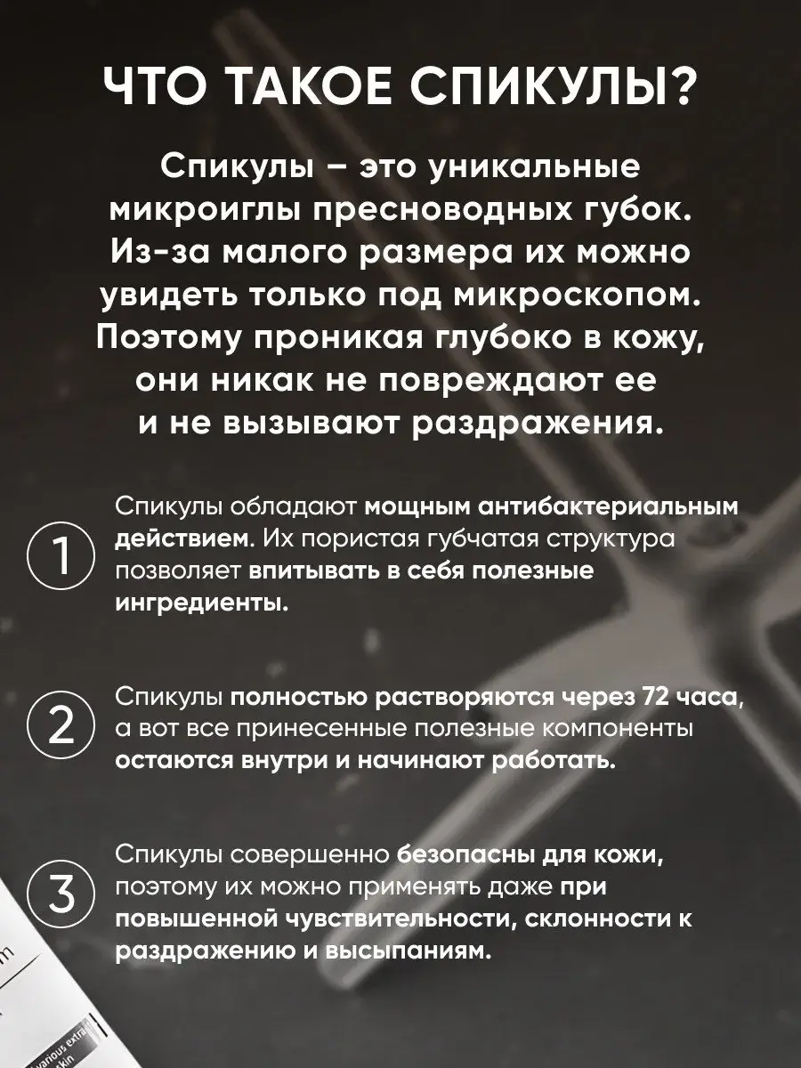 Корейская косметика известна своим качеством и эффективностью. Спикулы совершенно безопасны для кожи, поэтому их можно применять даже при повышенной чувствительности, склонности к раздражению и высыпаниям.