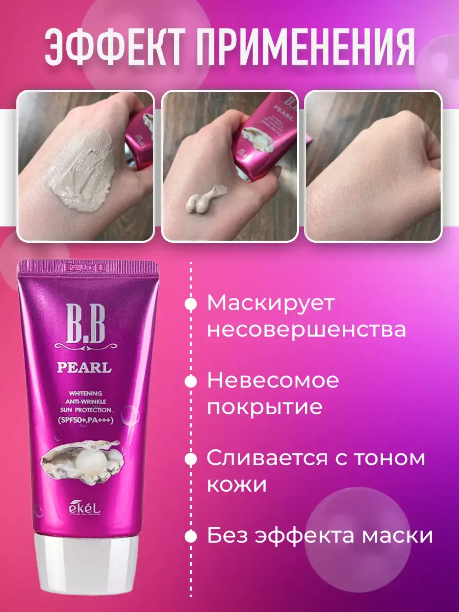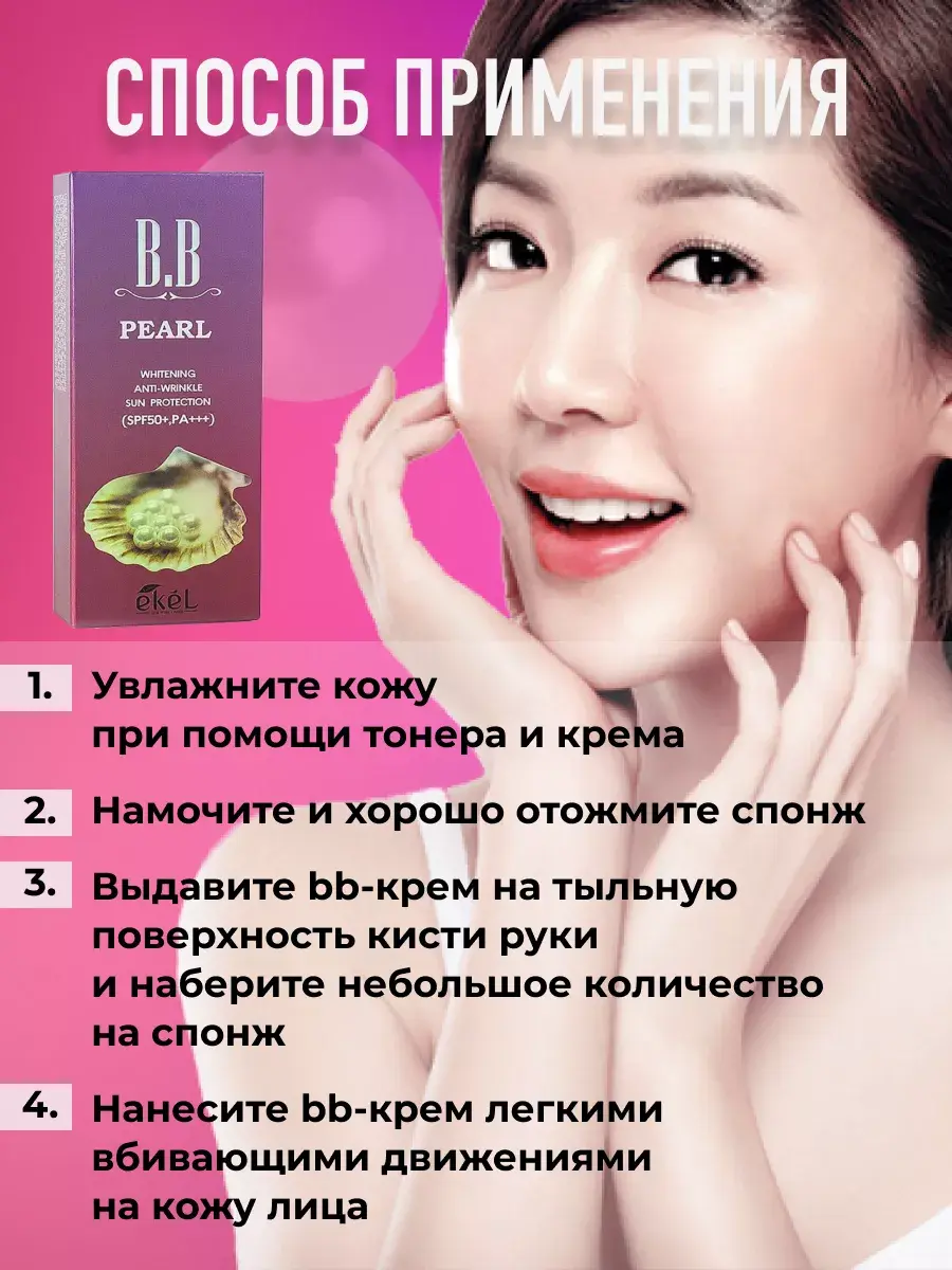 Корейский BB-крем с экстрактом жемчуга EKEL BB Pearl Cream SPF50+ PA+++ представляет собой многофункциональное средство для ухода за кожей лица и создания безупречного макияжа.Этот увлажняющий ВВ крем SPF 50 идеально подходит для создания легкого и естественного макияжа. Он обеспечивает тональную основу, которая скрывает недостатки кожи и придает ей здоровый вид. Формула содержит SPF, что защищает лицо от воздействия ультрафиолетовых лучей, делая его отличным выбором для повседневного использования. Произведенный в Корее, этот bbкрем сочетает в себе уходовые свойства и косметические преимущества. Светлый оттенок bb подходит для большинства типов кожи, обеспечивая естественное сияние без эффекта маски. Благодаря легкой текстуре средство легко наносится и равномерно распределяется, не забивая поры и позволяя коже дышать. Идеален для тех, кто ценит комфорт и защиту в одном флаконе. Этот продукт не только делает кожу более ровной, но также заботится о ней, увлажняя и питая в течение всего дня. Используйте бб его как базу под макияж или самостоятельно для создания свежего образа без лишних усилий. Подарите своей коже тонирующее покрытие с ухаживающим эффектом!